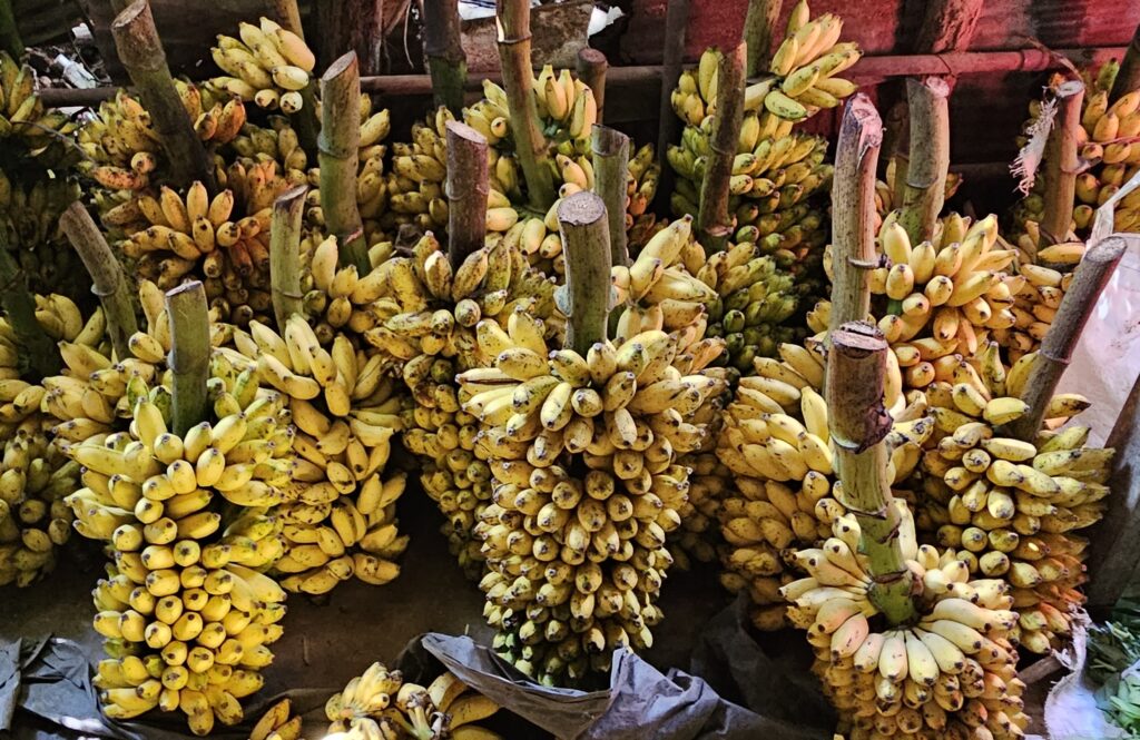 On the markets, we also noticed sugarcane and Kenda leaves (Macaranga peltata). These leaves are used for the sweet dish Helapa or to wrap jaggery.